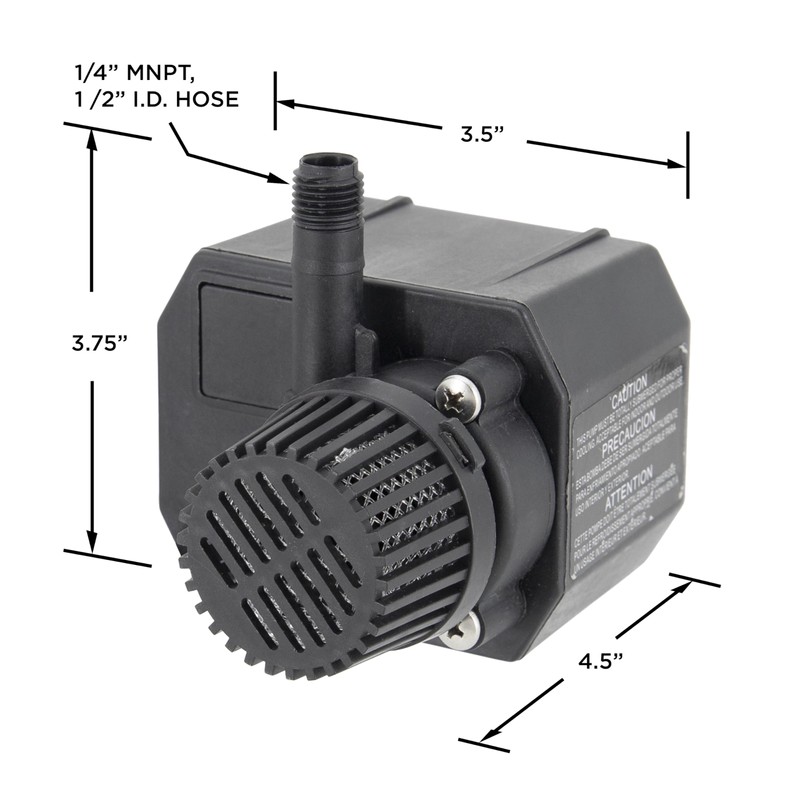 - 1/4" MNPT, 1/2" ID tubing discharge