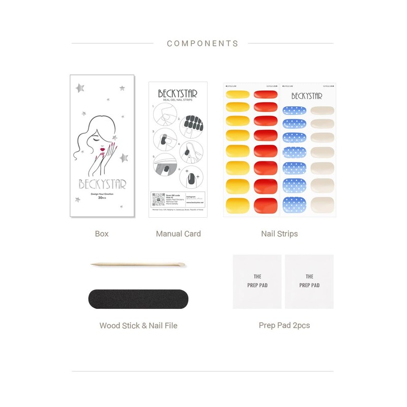 Beckystar Semi Cured Gel Nail Strips - Works with Any Nail Lamps, Salon-Quality, Long Lasting, Easy to Apply & Remove - Includes 2 Prep Pads, Nail File & Wooden Stick (polka girl)