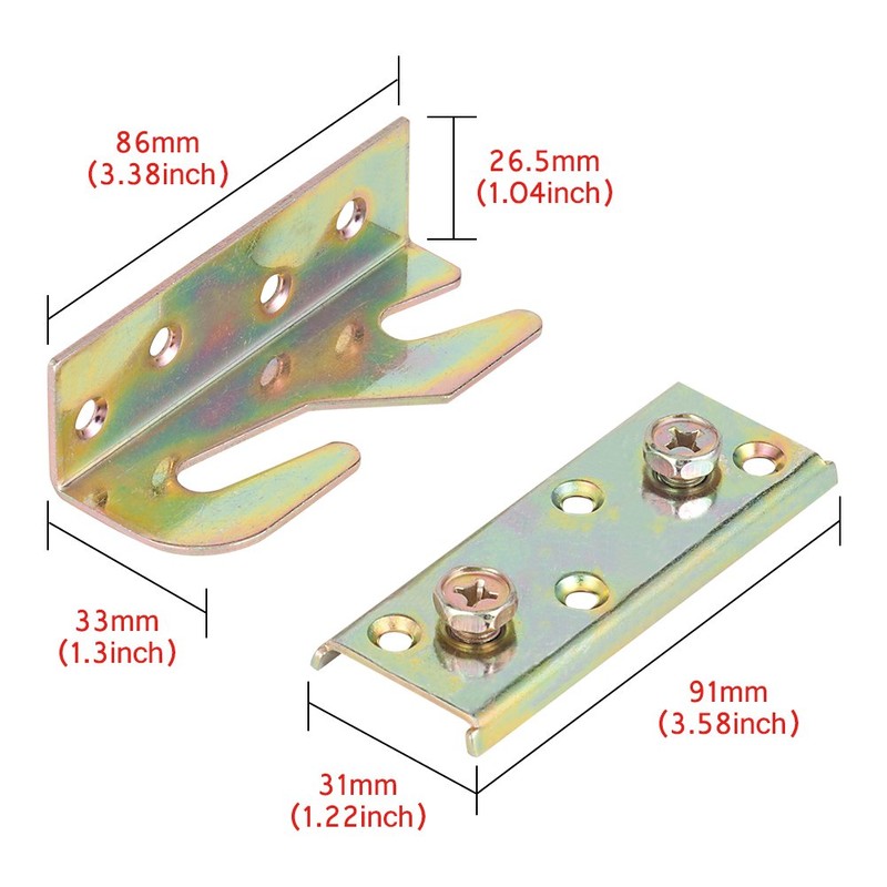 - ★ COLOR ZINC AND IRON MATERIAL — Bed rail fittings are made of sturdy and durable colour galvanized rust-resistant steel, thickened steel plates that can withstand more weight.