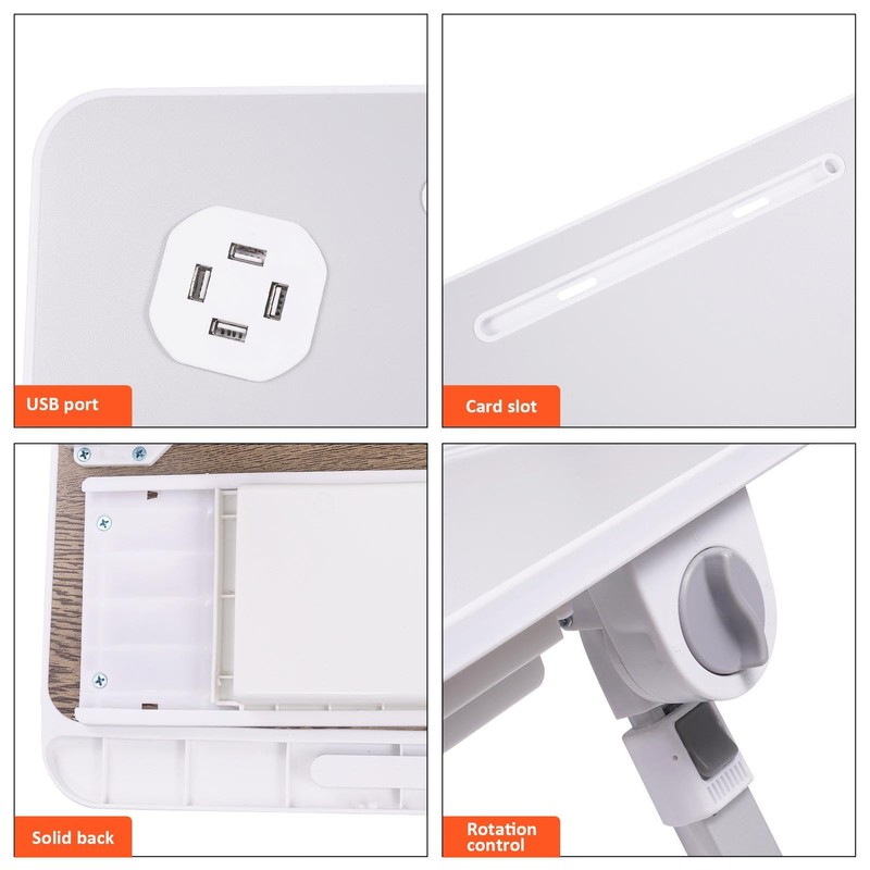 - Multiple Functions: The middle part of the laptop bed tray has slot design, which can be used to put phones, tablets, books, etc. The USB ports can be used for charging And there is a drawer which can be used to storage pencils, ruler and other small tools