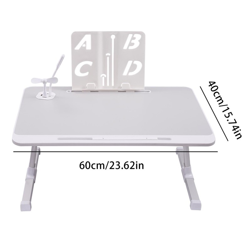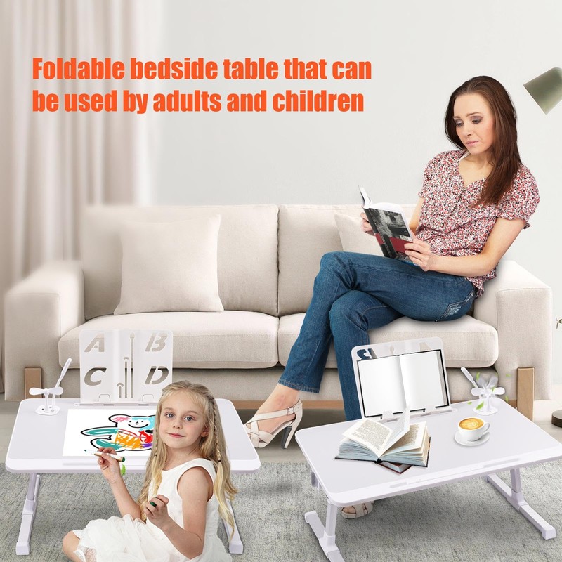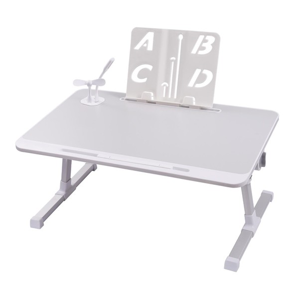 Bed Desk Table | Adjustable Laptop Holder for Bed - Folding Laptop Table with USB/Fan/Lighting/Drawer, for Reading, Writing, Eating