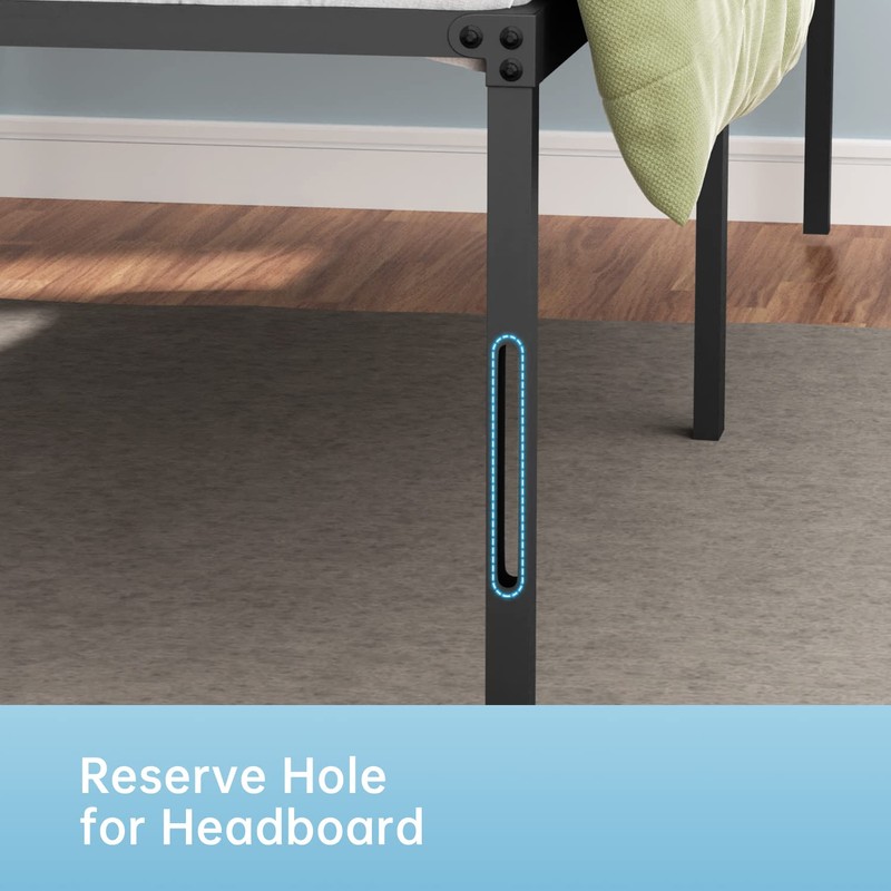 - ♫ 【NO NOISE】- Strong bed frame with sturdy steel slat structure, no squeak noise free, good sleep.Metal bed frame enclose the mattress to prevent slipping, plugs to avoid noise protect floor