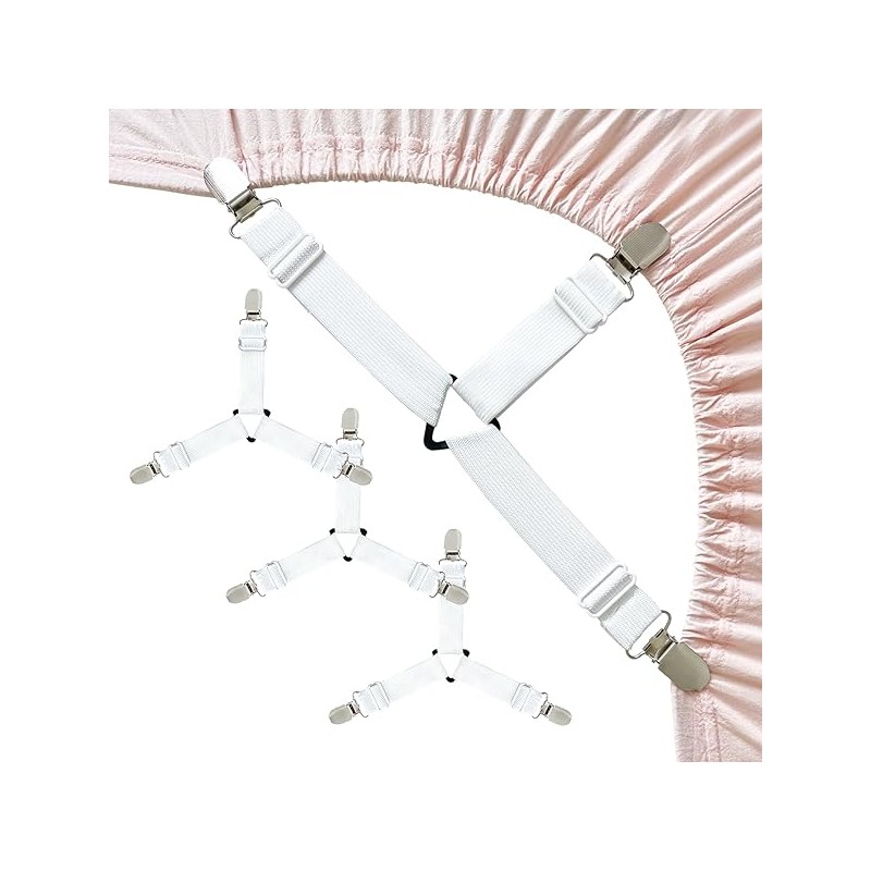 Bed Sheet Straps, Upgrade Fitted Bed Sheet Holders for Corners, Non Slip Sheet Clips White 4Pcs