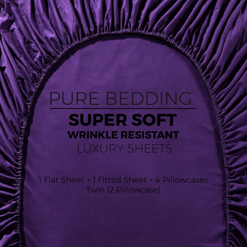 Bed Sheets - Full Sheet Set [6-Piece, Purple] - Hotel Luxury 1800 Brushed Microfiber - Soft and Breathable - Deep Pocket Fitted Sheet, Flat Sheet, Pillow Cases