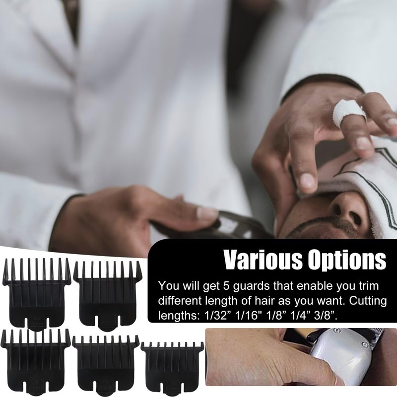 Bedaily Replacement Trimmer Guards for Andis T Outliner, From 1/32-3/8 inch Snap-on Blade Attachment Combs Set, 5 Pack