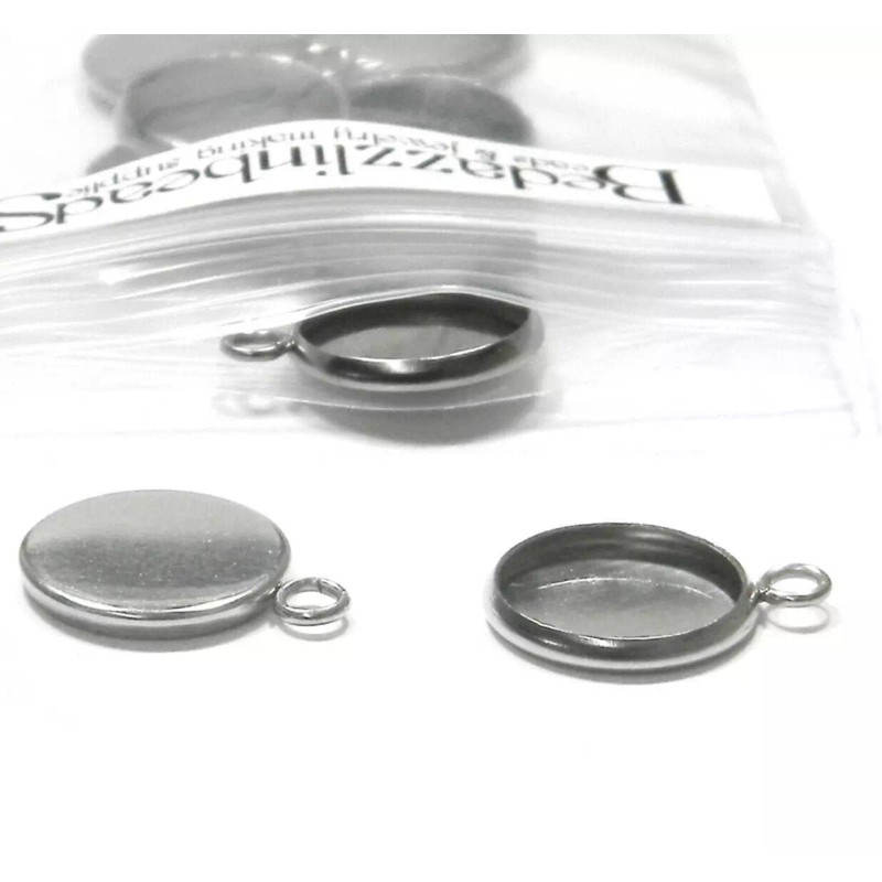 Bedazzlinbeads 2 Surgical 304 Grade Stainless Steel Dark Silver 12mm Bezel Cup Pendant Charms