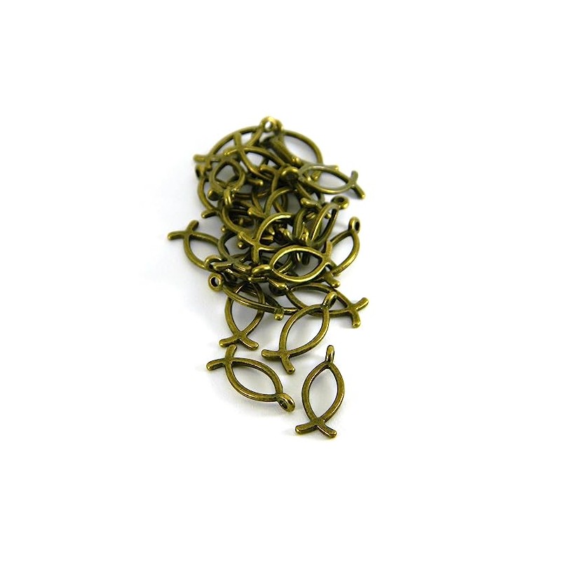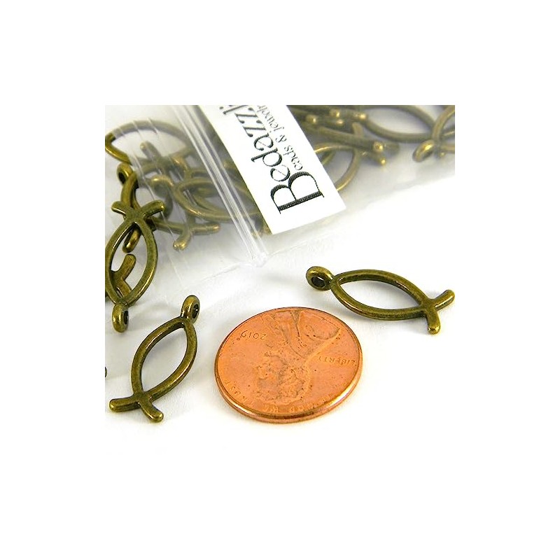 Bedazzlinbeads 30 Antique Bronze Plated Metal 3/4 inch Christian Fish Passover Pendant Charms with Loop Ring Hole