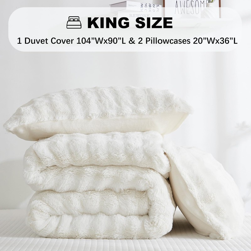- Duvet Cover King Size: Plush duvet cover king set includes one faux fur comforter cover (without insert) 104 inch x 90 inch; two plush pillowcases 20 inch x 36 inch.Warm Tips-The comforter sold separately