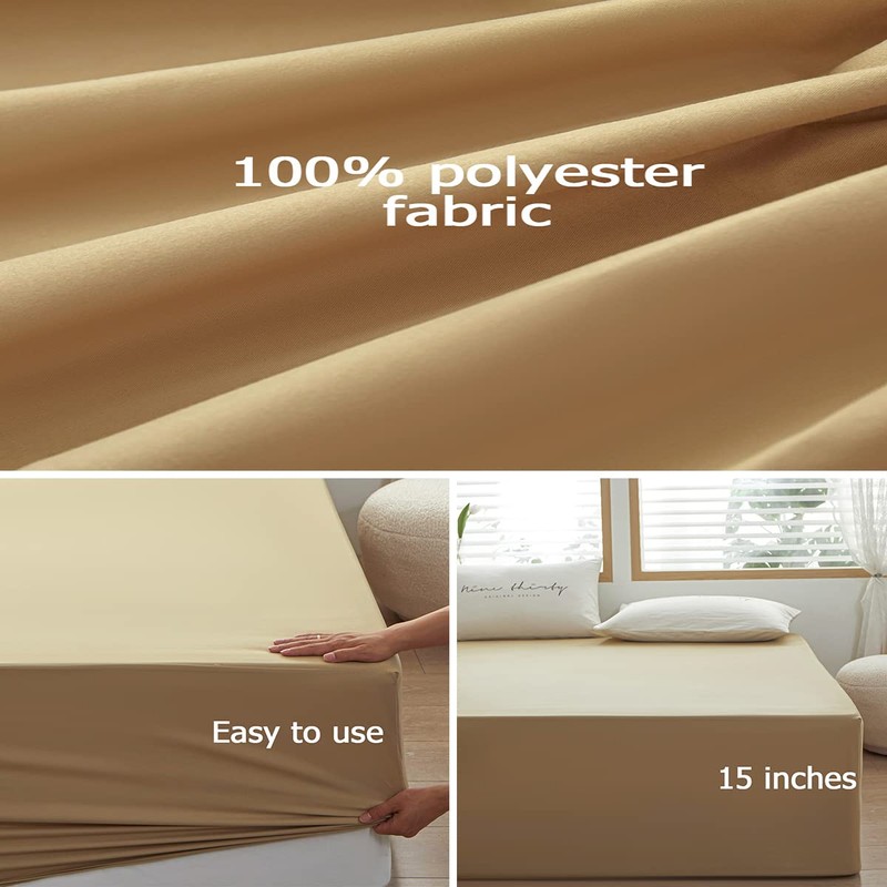 Bedding Full Size Fitted Sheet Only-Full Size Deep Pocket Bottom Fitted Sheet Fits 15inches Bed Matress Sheet Soft and Microfiber Easy Care - Camel