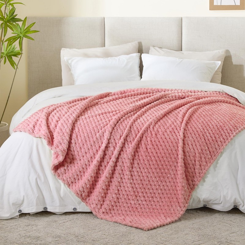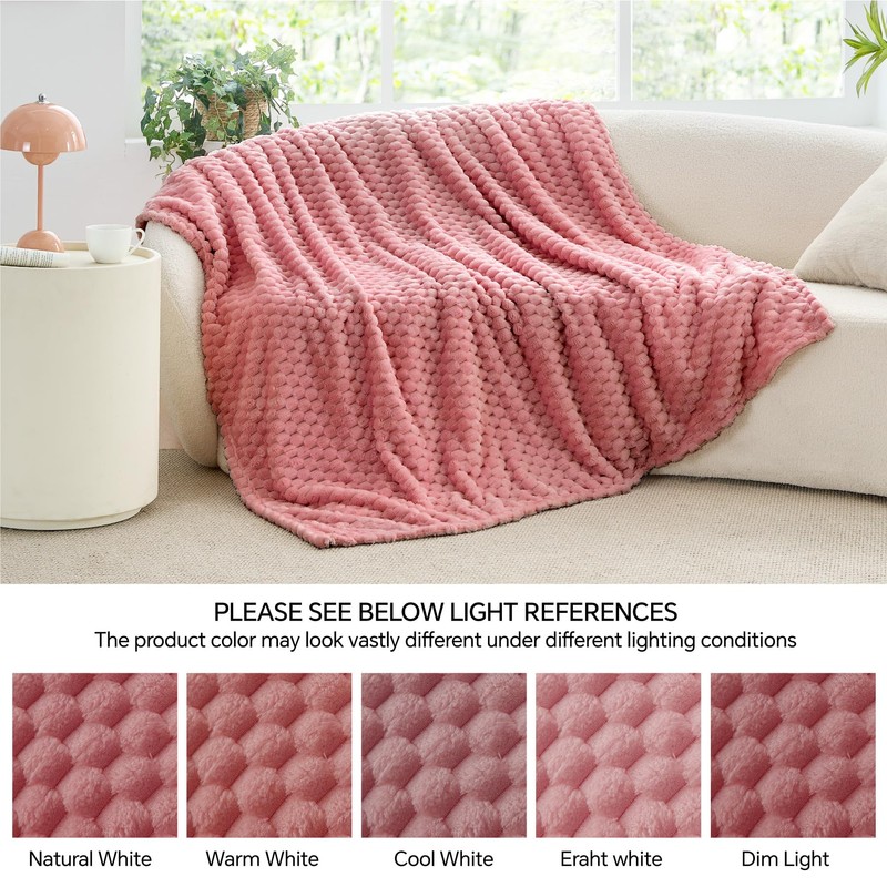 BEDELITE Fleece Blanket - 3D Jacquard Decorative Dusty Pink Throw Blankets for Couch & Bed, Soft and Cozy Warm Plush Fluffy Blanket All Seasons Suitable, 50x60Inches