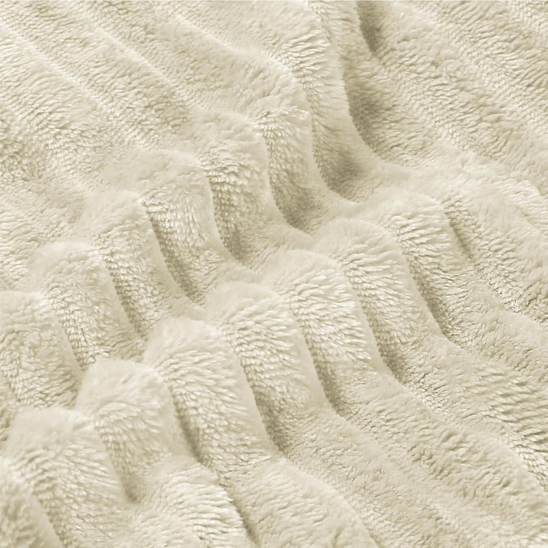 BEDELITE Fleece Throw Blanket for Couch – 3D Ribbed Jacquard Soft and Warm Decorative Fuzzy Blanket – Cozy, Fluffy, Plush Lightweight Beige Throw Blankets for Bed, Sofa, 50x60 inches