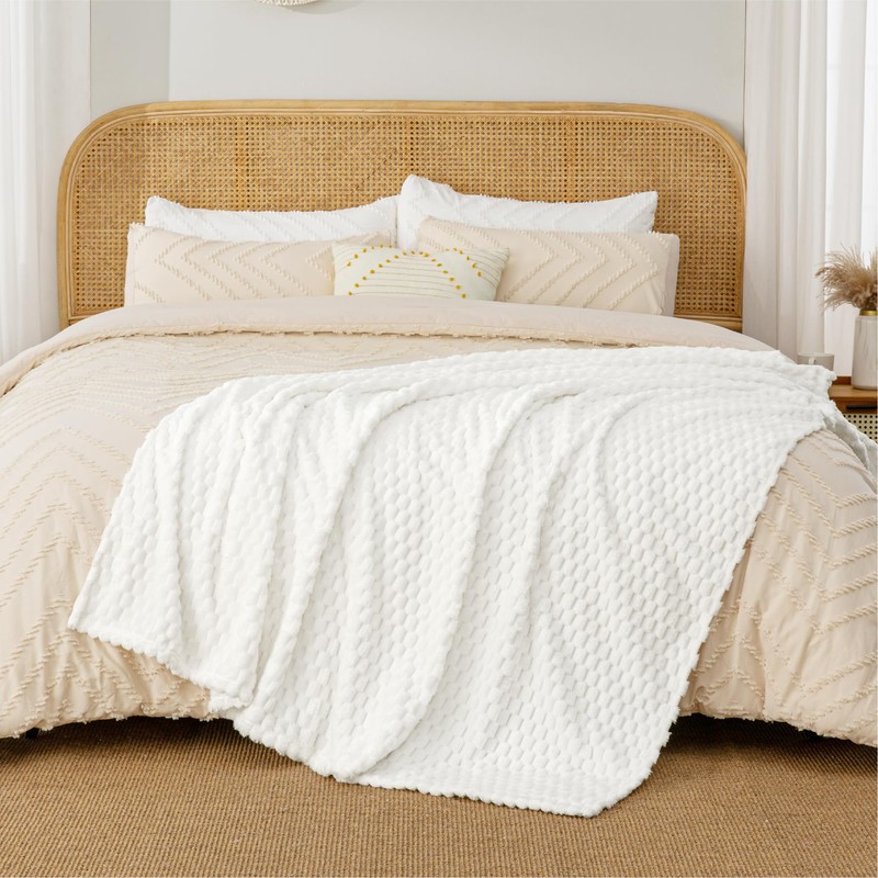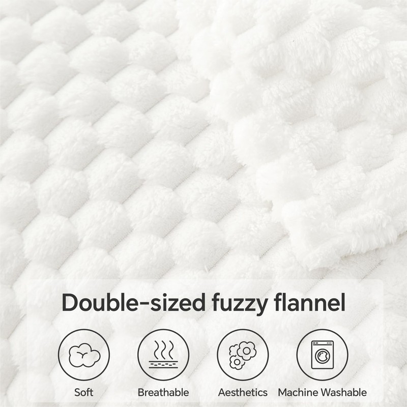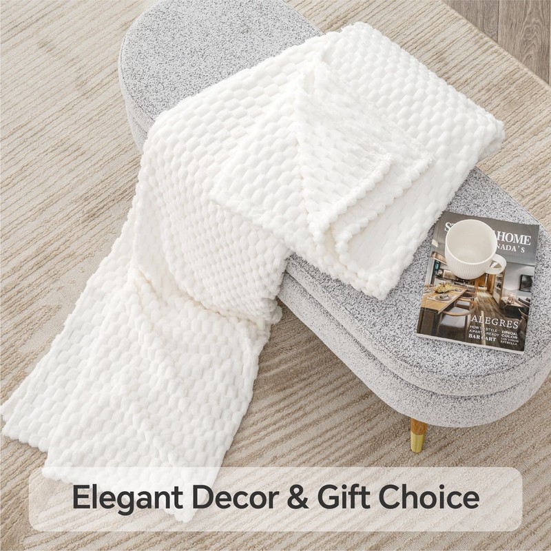 BEDELITE Fleece Throw Blanket for Couch & Bed - 3D Jacquard Decorative White Blanket, Super Soft and Cozy Warm Fuzzy Blanket for Winter, 50x60Inches