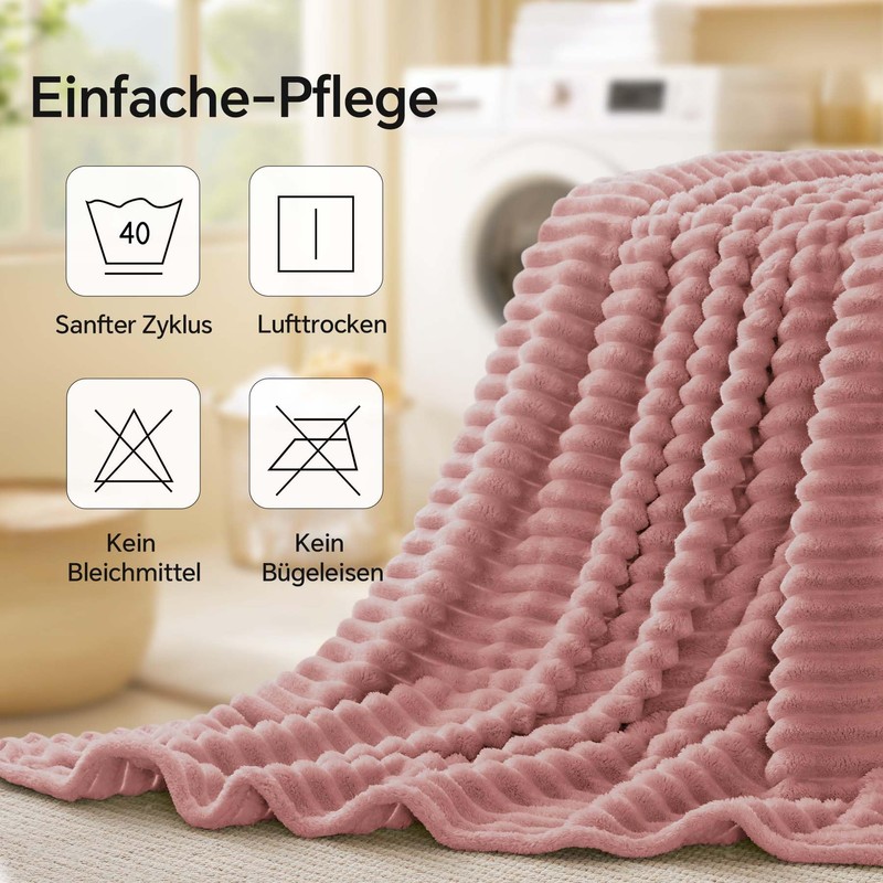 BEDELITE Fleece Throw Blanket for Couch, Soft and Warm, Fluffy Dusty Pink Blanket, Decorative and Giftable Striped Blankets, 125 x 150 cm