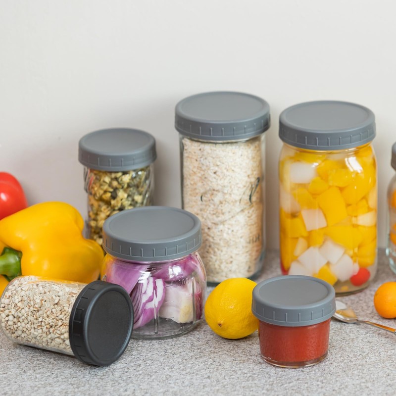 - 【Package Included】: 9 gray regular mouth plastic mason jar lids fit any 2.75 inch (70mm) outer diameter mason jar.