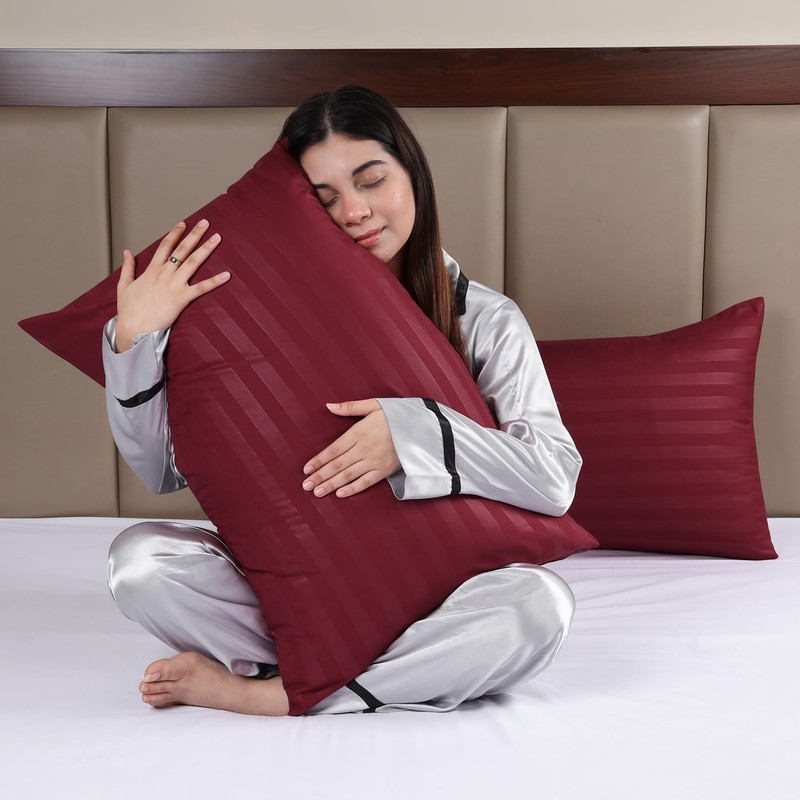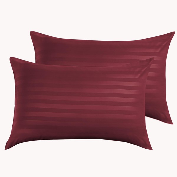 BedLooms Burgundy Pillow Cases 2 Pack - 100% Microfiber Envelope Closure 50x75cm Stripe Pillow Cases Premium Hotel Quality Anti Allergy Pillow Cover