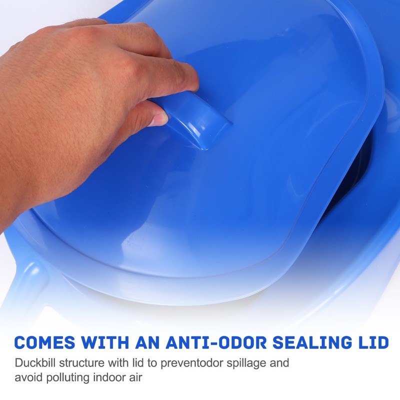 Bedpan with Lid Bed Urinal Unisex Commode Pan Easy to Use Fracture Bedpans with Handle for Bedbound Patient (Blue)