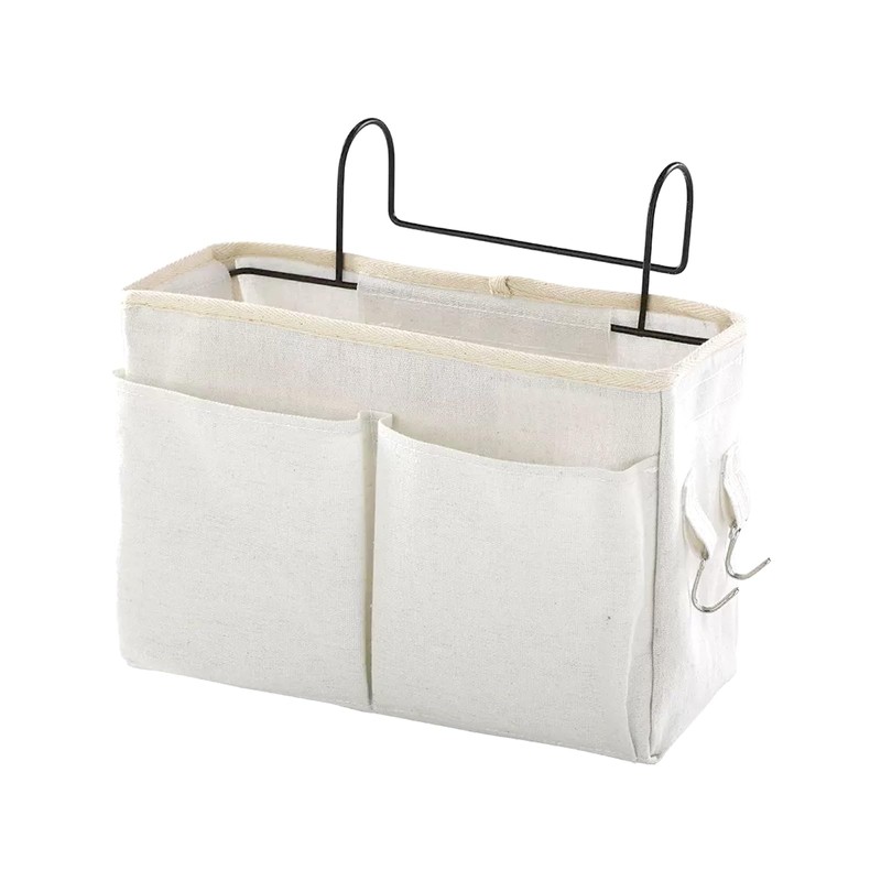 - Package Content: You will receive 1 white bedside hanging storage.The size of the bedside pocket with iron rods is 30x10.5x18 cm. It features 1 large pocket, 2 small pockets, and side mesh pockets, meeting various storage needs
