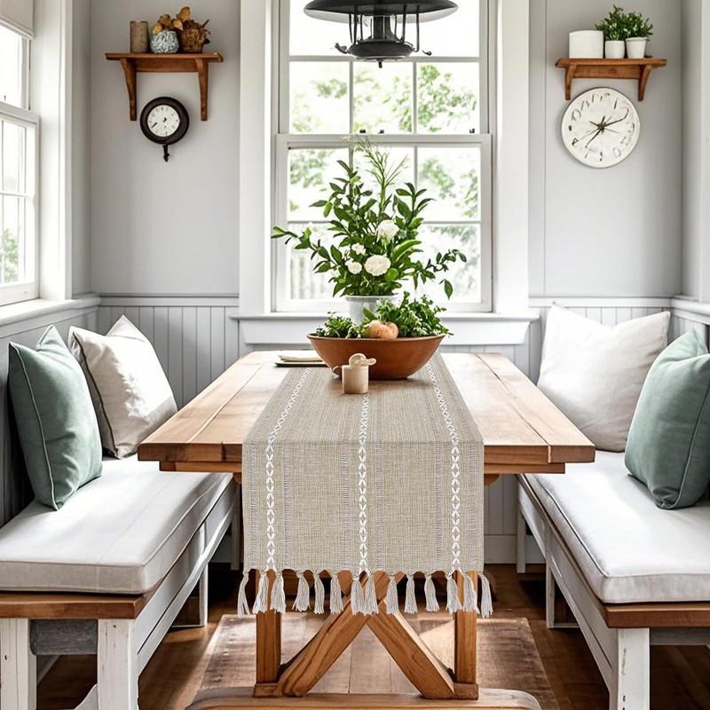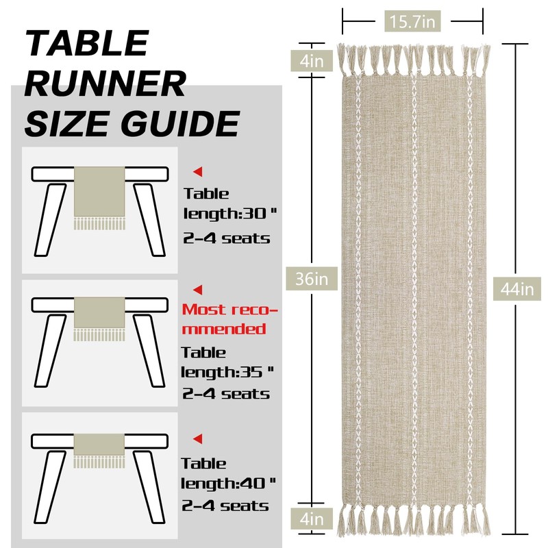 - 【Bedside Table Runner】The short table runner is 15.7 x 36 inches long (44 inch with tassels). It can give your tables or dresser a rustic and boho look, making it a four-season home decor, from spring to winter decor.