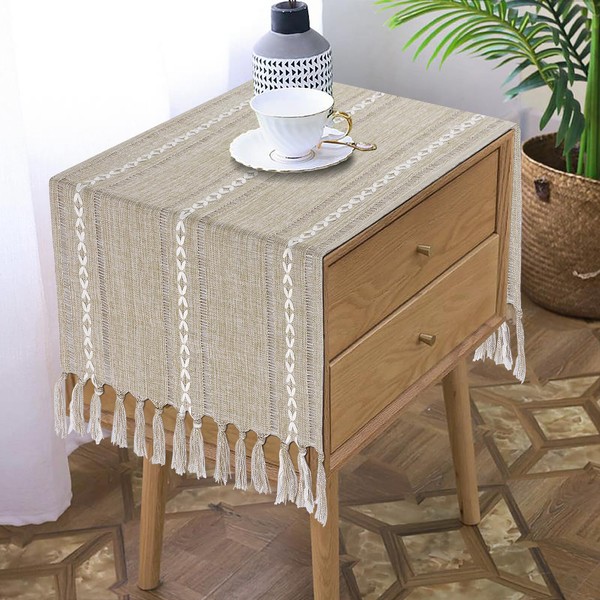 - 【Nightstand Table Cover】The end table cover is made of cotton linen, with handmade tassel designed, high density, soft, comfortable. This coffee nightstand cover cloth effectively prevents furniture from scratching.