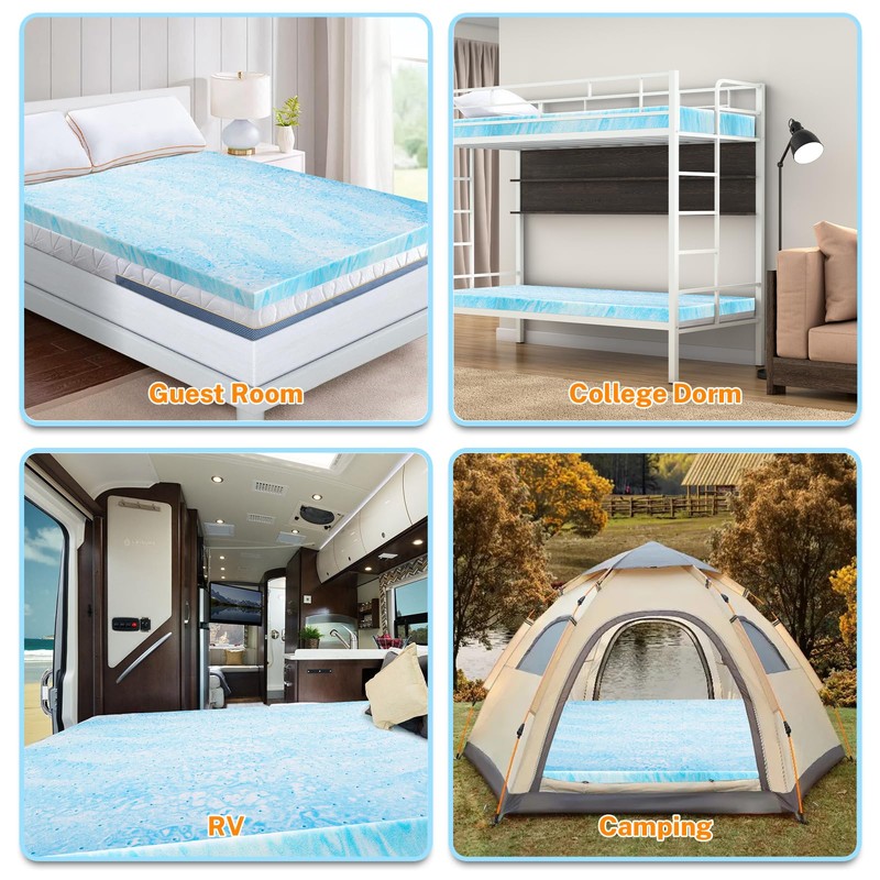 BedsPick Twin Memory Foam 2" Mattress Topper, Gel Infused, Plush, Breathable, CertiPUR-US, Oeko-Tex Standard 100