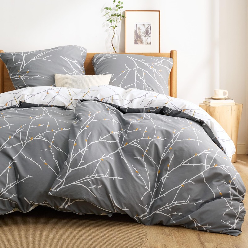Bedsure Bed Linen, 135 x 200 cm, Cotton, Grey Bed Linen Sets, 135 x 200 cm Duvet Cover, 2-Piece Set with 80 x 80 cm Pillowcase, Warm Bed Linen with Zip, Twig Pattern