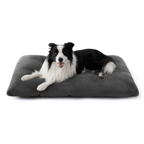 Bedsure Washable Dog Crate Bed for Extra Large Dogs, Comfort Fluffy Plush Pet Kennel Pad with Non-Slip Bottom, Machine Washable Pet Sleeping Mat, XL 41"x27", Dark Gray
