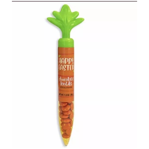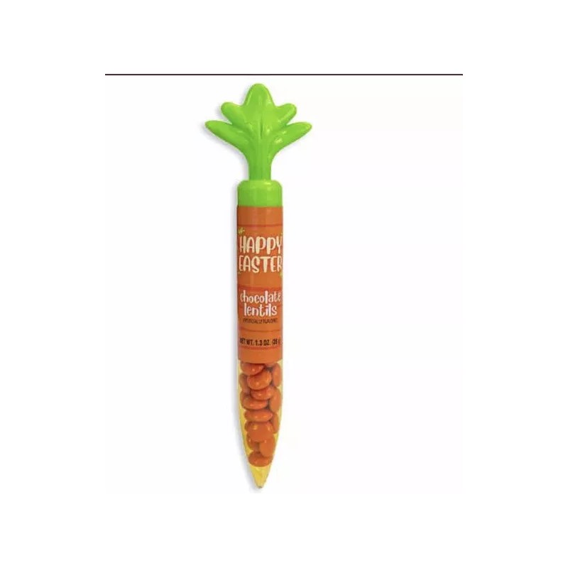 Bee CARROT TUBES WITH ORANGE CHOCOLATE LENTILS 1.3 Oz 36gm Easter. See Below