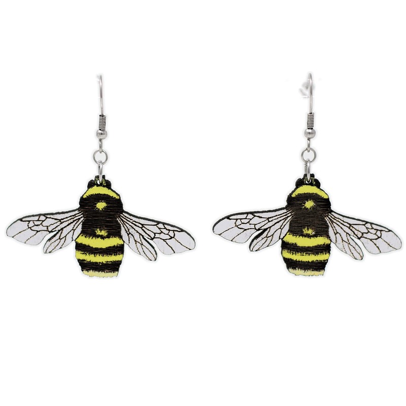 Bee Dangle Earrings | Hand-Painted Wood Jewelry
