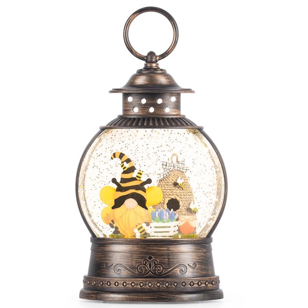Bee Hive Decor Spring Bee Gnome Light Up Snow Globe 6H Timer Honey Bee Decorations for Spring Decor,Home Shelf Decor,Battery Operated & USB Operated