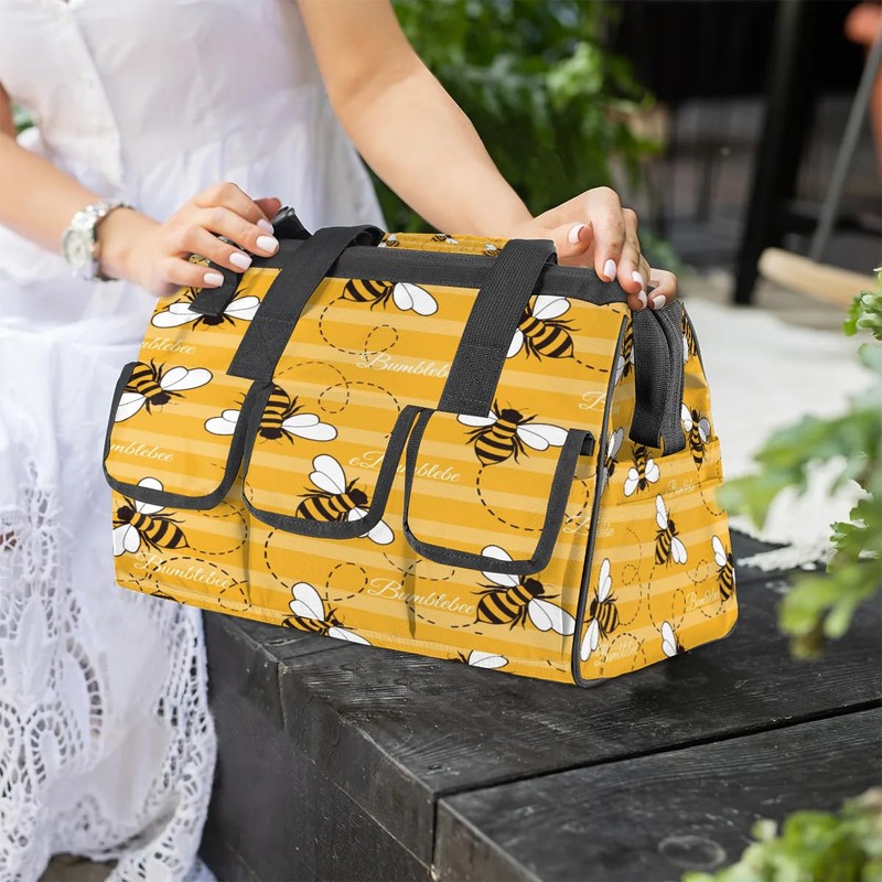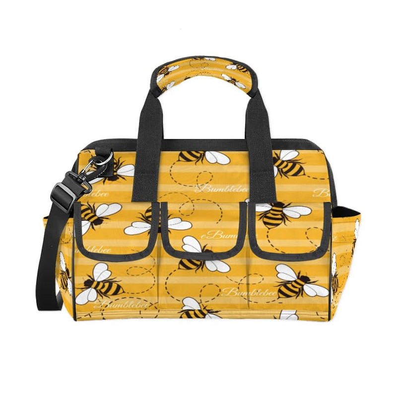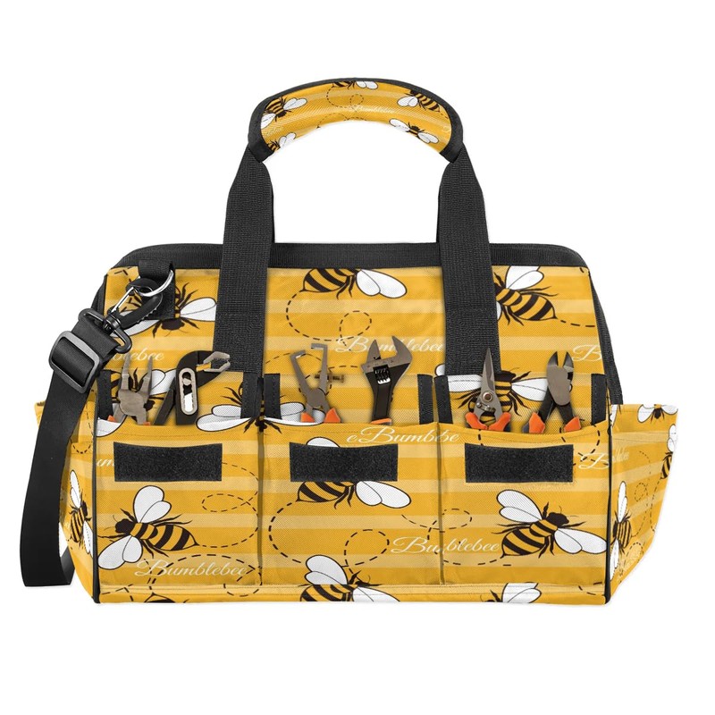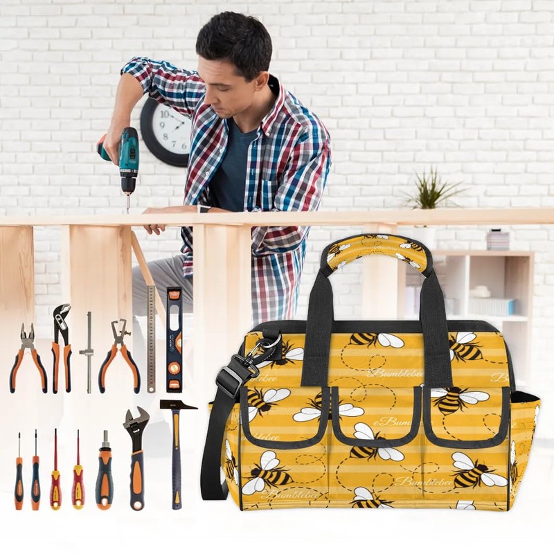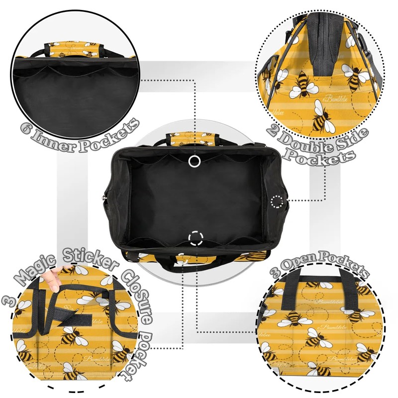Bee Strips Tool Bag Heavy Duty Waterproof Tool Tote Organizer Multi Pockets Wide Mouth Tool Organizer Storage Tote Bag with Adjustable Shoulder Strap