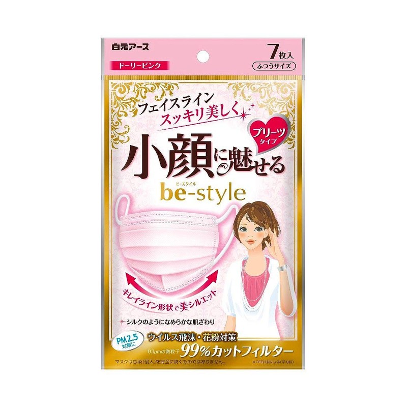 Bee Style Pleated Mask, Regular Size, Dolly Pink, 7 Pieces