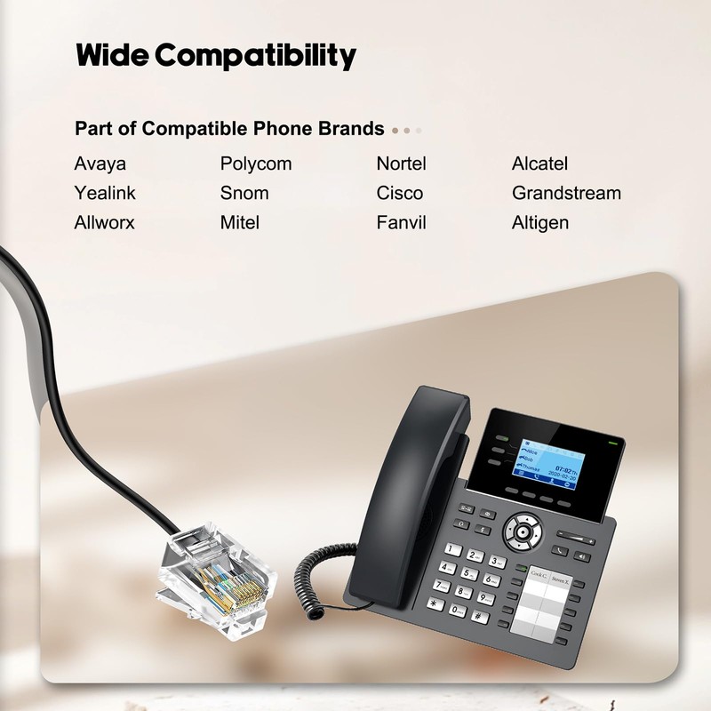 GREAT DURABLE: The Hands-free wired RJ9 headset with tough design, strong headband, quality plastics, superior microphone and speaker allows for 24/7 heavy use in offices, call centers and homes. Reinforced cord of the communication headset is built with Kevlar to withstand office chair wheels, sharp objects, can rival with Jabra headset for heavy use.