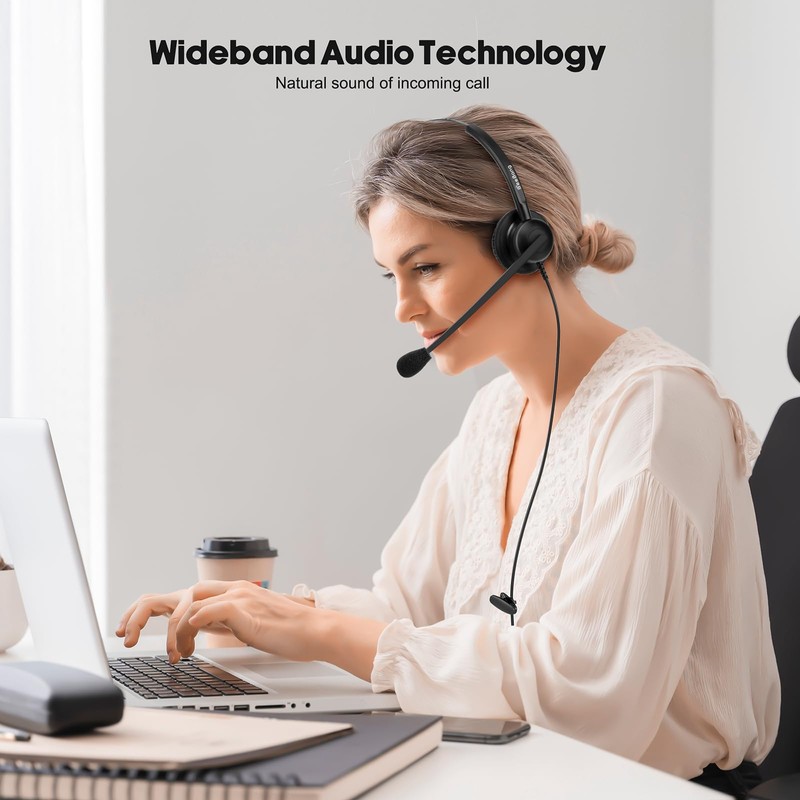 - HD AUDIO SOUND: Office headset with wideband speaker delivers crystal clear sound for easy communication. With unidirectional noise canceling microphone, the telephone headset can block out unwanted background noises for the other end callers to hear clearly, perfect for use in noisy environment.