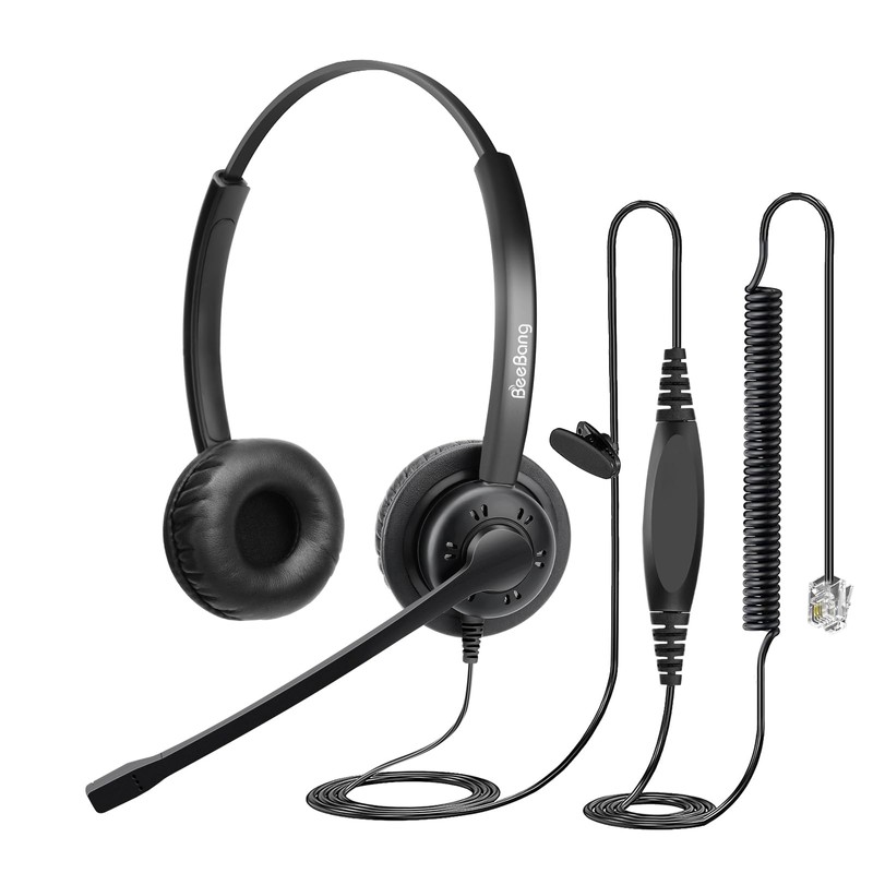 Beebang Telephone Headset with Pro Noise Canceling Microphone, RJ9 Phone Headset for Office Call Center Landline Deskphone, Work for Mitel NEC Shoretel Aastra Uniden Allworx Toshiba