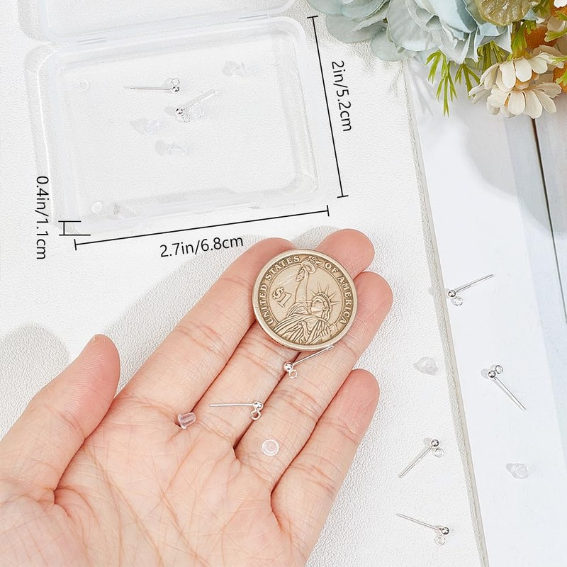 - [Ball Earring Studs Findings]: Ball stud earrings findings are designed with ball front, simple but stylish, add extra shine to your wearing, providing with ear nuts, easy to storage.