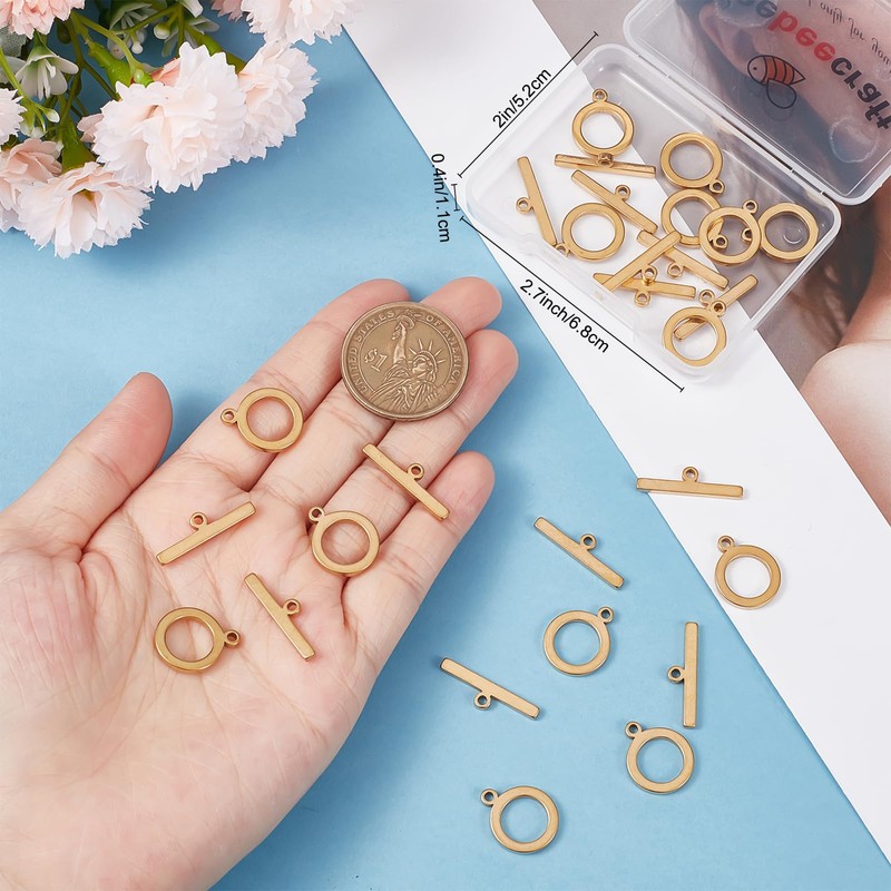 Beebeecraft 1 Box 15 Sets Toggle Clasps 18K Gold Plated Clasps Jewellery Clasps Connectors Round Ring Toggle T Bar Clasps Sets for Necklace Bracelet Earring Making…