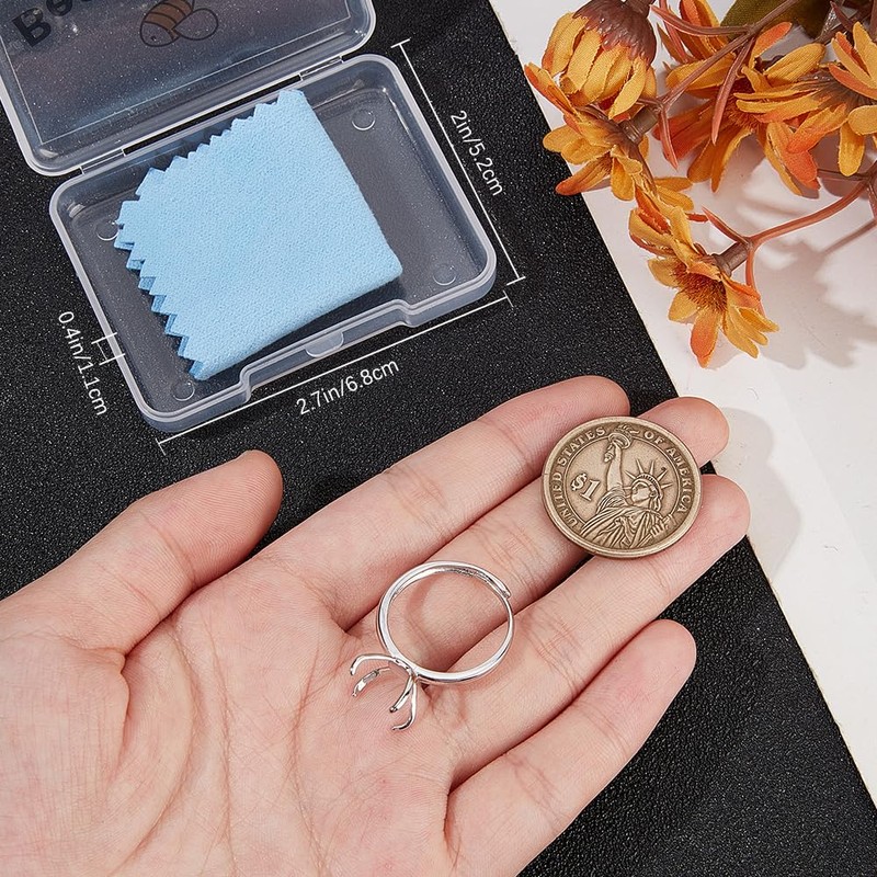 - [1Pc Ring In A Box]: 1Pc blank ring base and silver polishing cloth, all packaged in a small box: 6.8x5.2x1.1cm, easy to not lose the pieces, can keep chains from dirty.