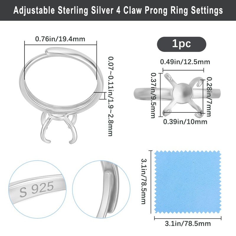 - [Rhodium Plated 925 Sterling Silver]: 4 claws ring blanks are made of rhodium plated 925 sterling silver, make it whiter and brighter with high gloss, moonlight-like silver is sparkling, more textured. Not easy to rust or fade, great for long term wearing.