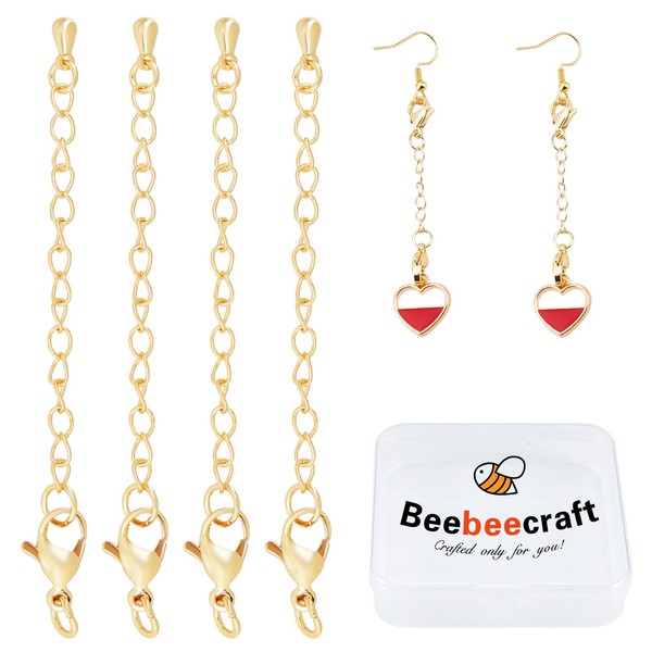 Beebeecraft 24K Gold Plated Necklace Extender for Bracelet Anklet Extension Chain with Lobster Clasps and Bead Tips for Jewelry Making 2.5 Inch