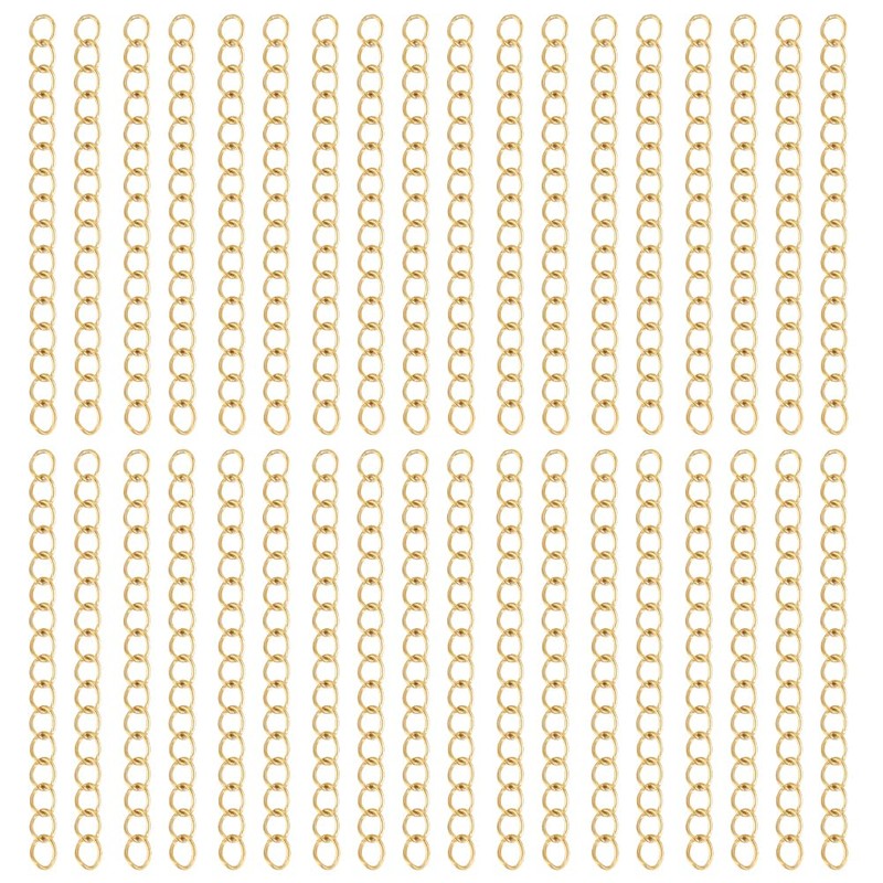 Beebeecraft 1 Box of 100 Pieces 18K Gold Plated Stainless Steel Necklace Extenders Golden Link Bracelet End Chain Jewellery Extensions for DIY Jewellery Making