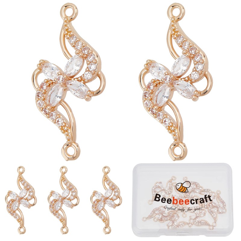 Beebeecraft 10Pcs Cubic Zirconia Links Gold Flower Connectors Charms Floral Bracelet Necklace Connector Pendant Bracelet Necklace Connector Pendant for DIY Jewelry Making
