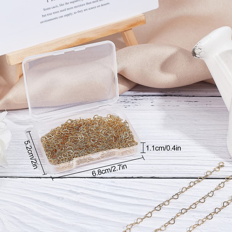 Beebeecraft 16.4 Feet / 5 m Heart Link Chains 18 Carat Gold-Plated Brass Cable Chains for Making Bracelets, Necklaces and Jewellery 3 x 5 x 0.5 mm