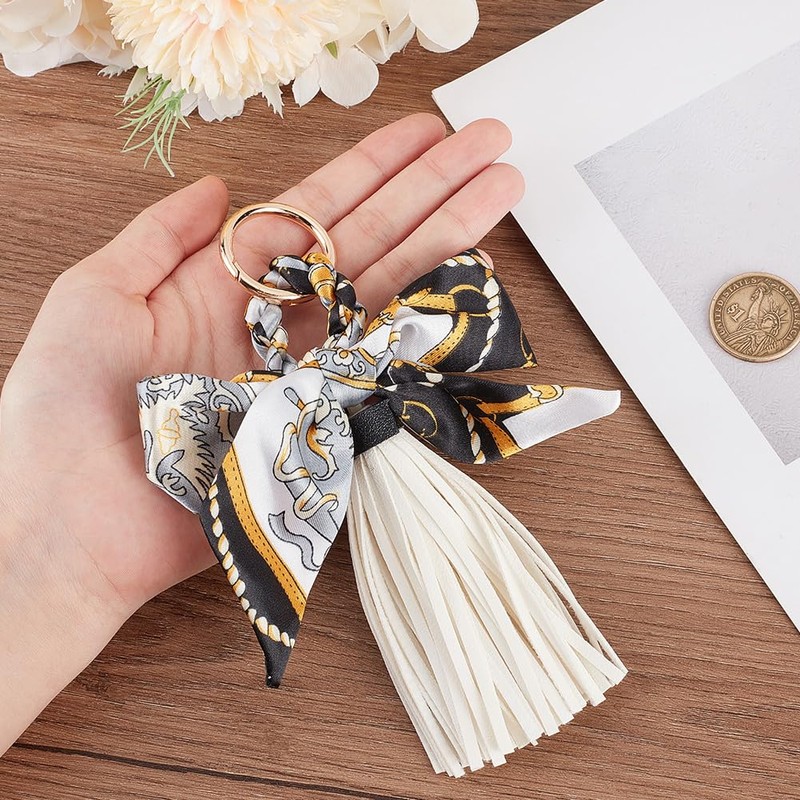 - Bow and tassels: bows and tassels of the same colour are combined with each other without looking monotonous, increase the drape of the keyring and adapt the design better