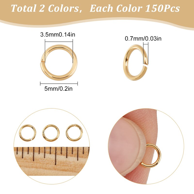 Beebeecraft 300Pcs 2 Colors 5mm Open Jump Rings 18K Gold & Sterling Silver Plated Jewelry Making Jump Rings for Keychains Necklace Bracelet Repair