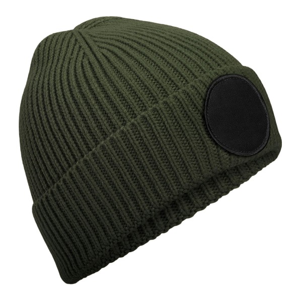 Beechfield B332 Round Fashion Patch Beanie Hat, Olive Green/Black