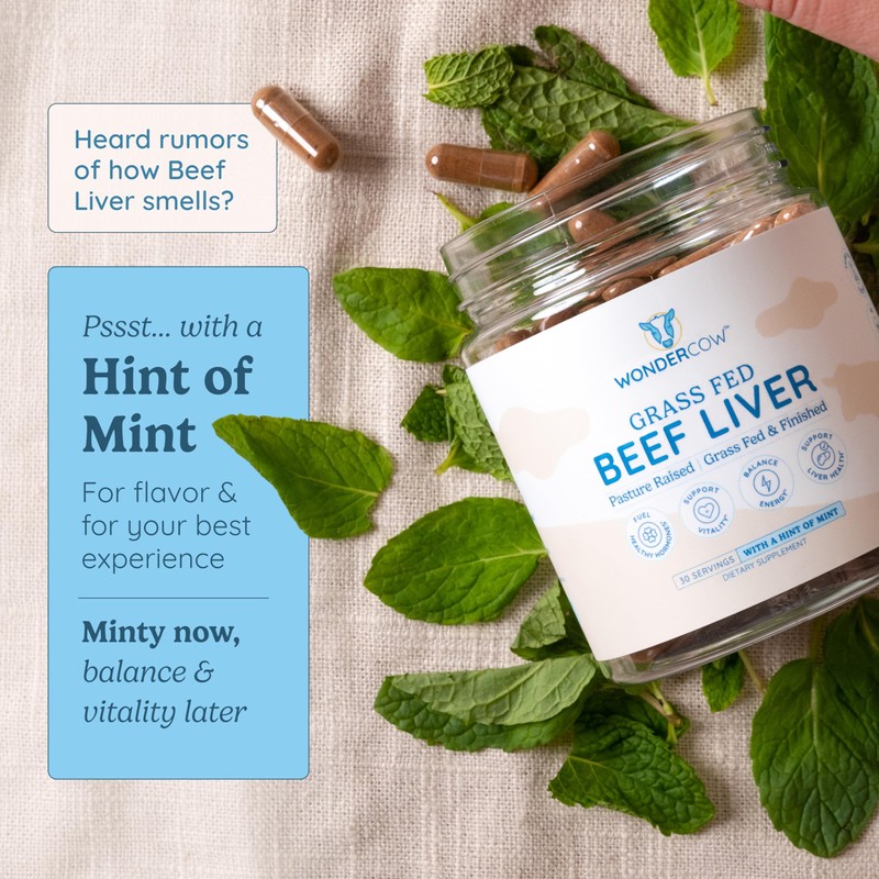 - Nutrient-Rich Beef Liver Capsules with a Refreshing Twist: Discover a powerhouse of nutrients in every serving of WonderCow Grass-Fed Beef Liver Capsules. Packed with protein, iron, Vitamin A, and B-complex vitamins to support your energy, immunity, and overall wellness. Our unique mint-flavored capsules offer a refreshing and smooth experience, making it easy to enjoy the benefits of this superfood without the traditional liver taste.