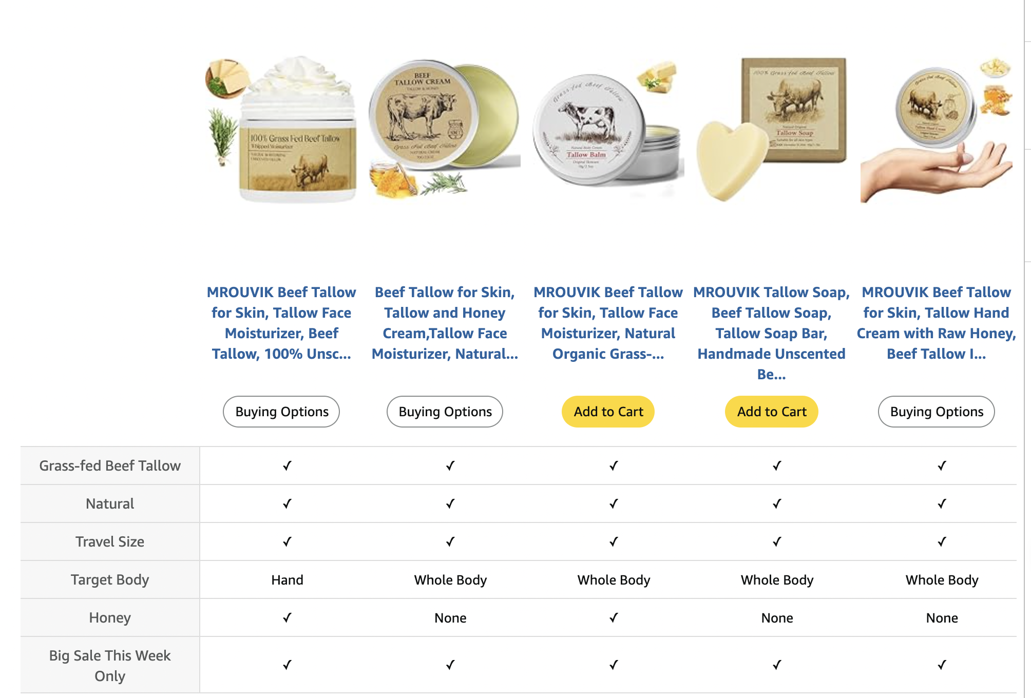 - Superior Moisturization: Compared to other moisturizers, our grass-fed beef tallow for skin moisturizer offers enhanced hydration and nourishment. It's packed with vitamins A, D, E, and fatty acids that deeply replenish the skin's moisture barrier, promoting a healthy and radiant complexion. Our grass-fed beef tallow for skin is also rich in minerals, vitamins A, D, E, K, and B12, as well as conjugated linoleic acid (CLA) found in the highest concentrations in 100% grass-fed tallow.