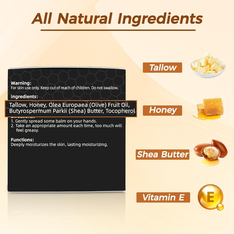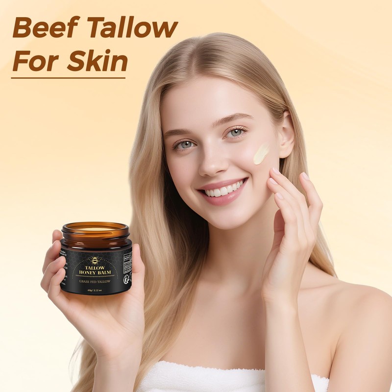 Beef Tallow, Beef Tallow Skin Care with Honey, Tallow and Honey Balm For Dry Skin, All Natural Moisturizer For Face and Body, Women and Men, 60g/2.12oz