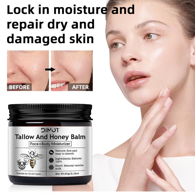 Beef Tallow for Face Skin, Tallow and Honey Balm for Skin Honey Butter Faces & Body Cream For Skins Firming & Hydrating Balm Care Tallows Face Moisturizer Cream, 2.12 Oz, 1PC