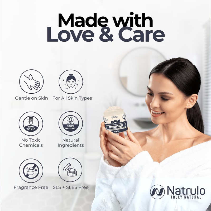 Grass-fed tallow combined with potent essential oils helps to not only soothe sensitive skin but also provide essential anti-aging benefits. Proudly crafted in the USA, this holistic skincare solution ensures your skin remains radiant, youthful, and well-maintained.